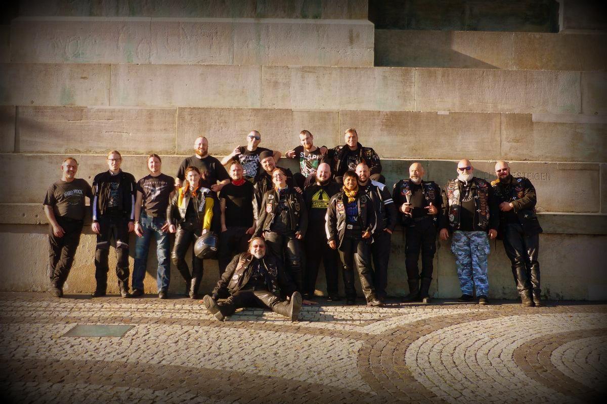 Es begab sich, daß man sich um die Mittagszeit ganz uffgerescht zum kollektiven Tankstellenbesuch traf (wir fahrn ja net mim leeren Tank los). Zu eben dieser Zeit trafen dann auch die Taunusmaxxer net weniger uffgerescht nacheinander in der Black Mamba Garage ein. Als die Tanks voll, Ölstand auf ordentlichem Niveau, mehr oder weniger vernünftiger Luftdruck in den Reifen und Füllgrad der Batterien vorhanden, die Action Cams vorne und hinten installiert waren, konnten wir uns im frühen Nachmittag schon viel weniger uffgerescht und pünktlichst zur Ausfahrt mit einer Gruppe von 15 Motorrädern und 18 Leuten mit allerbester Laune in Richtung Rheingau in Bewegung setzen. ...Also fast Alle, wenn nicht Tobi´s Mopped ca. 2 Minuten vor Abfahrt urplötzlich Opfer eines jähen Spannungsabfalls in der Bordelektrik geworden wäre. Angeschoben das Ding und los gings von Panrod über die Aarschossee - Bad Schwalbach - Eltville auf die B42 nach Rüdesheim zum Niederwalddenkmal und dem dort geplanten Zwischenstopp. Hier wurde der Dehydrierung vorgesorgt, Ray´s Geschichten aus dem Reich der Sagen und Mythen gelauscht, Gruppenbilder gemacht und das kulturelle Angebot und einen einzigartigen Blick über das Mittelrheintal genossen.