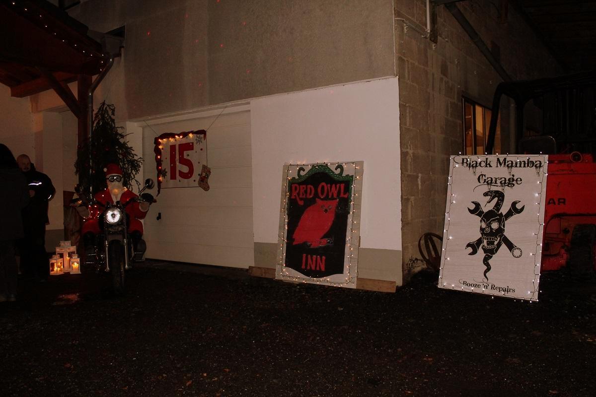 In diesem Jahr wollten wir es uns nicht nehmen lassen, an diesem Brauch aktiv mit einem eigenen Fenster teilzunehmen. In unserem Fall ist es dann ein Tor geworden, nämlich das Garagentor der BMG /ROI. Auch ein zur Location passendes Motto durfte nicht fehlen. Die Idee war naheliegend, es sollte unsere Leidenschaft für Motorräder und laute Musik mit der Vorweihnachtszeit in Einklang gebracht werden. So wurde ein Weihnachtsmann in Lebensgröße gebastelt, der auf einem Motorrad drapiert, einen wesentlichen Aspekt zum Fensterbild beitrug. Danke an dieser Stelle nochmal an Thorsten, der sein Motorrad für diese Aktion zur Verfügung stellte.